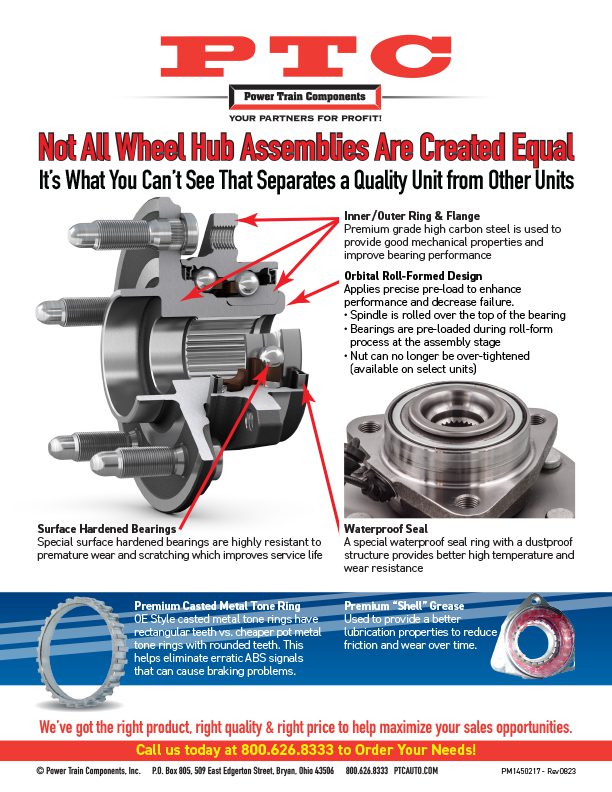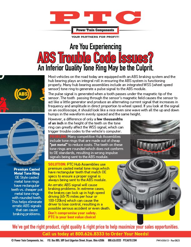 Sort By Type All Program Flyer Technical Bulletin Sort by Product Select Product Category Bearings & Seals —Bearings —Seals Clamps & Fasteners —Wheel Fasteners Driveline Parts —Center Support Bearings —Universal Joints Filters —Air Filters —Cabin Air Filters —Fuel Filters —Oil Filters —Transmission Filter Kits Hub Assemblies —Hub Bearing Assemblies —Spindle Hub Assemblies Specialty Markets —Trailer Products Suspension Parts —Complete Steering Knuckle Assemblies Reset Hub Assemblies 7 Most Common Wheel Hub Assembly Installation Mistakes View Details Download PDF Hub Assemblies Are You Experiencing ABS Trouble Code Issues? View Details Download PDF Filters Benefits of Replacing the Transmission Filter View Details Download PDF Filters Choosing the Right Cabin Air Filter View Details Download PDF Specialty Markets Determining Trailer Hub & Drum Bolt Patterns View Details Download PDF Hub Assemblies Experiencing Continuous Rotor Pulsation Problems? View Details Download PDF Hub Assemblies Most Common Symptoms of Worn Wheel Hub Bearing View Details Download PDF Hub Assemblies Not All Wheel Hub Assemblies Are Created Equal View Details Download PDF Filters Premium Diesel Fuel Filters for Dodge Ram 6.7L Engines | PTC PGF401 View Details Download PDF